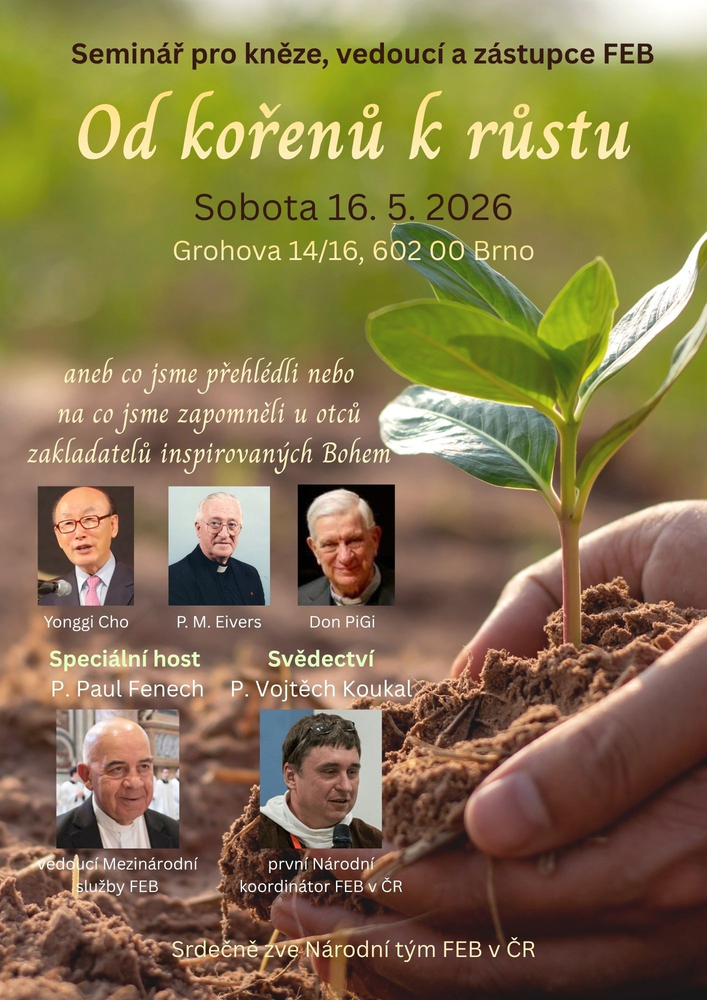 Srdečně zveme kněze, vedoucí a zástupce FEB na seminář, který nám pomůže navrátit se ke kořenům, podívat se hlouběji k myšlenkám našich zakladatelů, znovu v sobě najít onu jiskru Ducha Svatého, která nás zavedla na cestu FEB